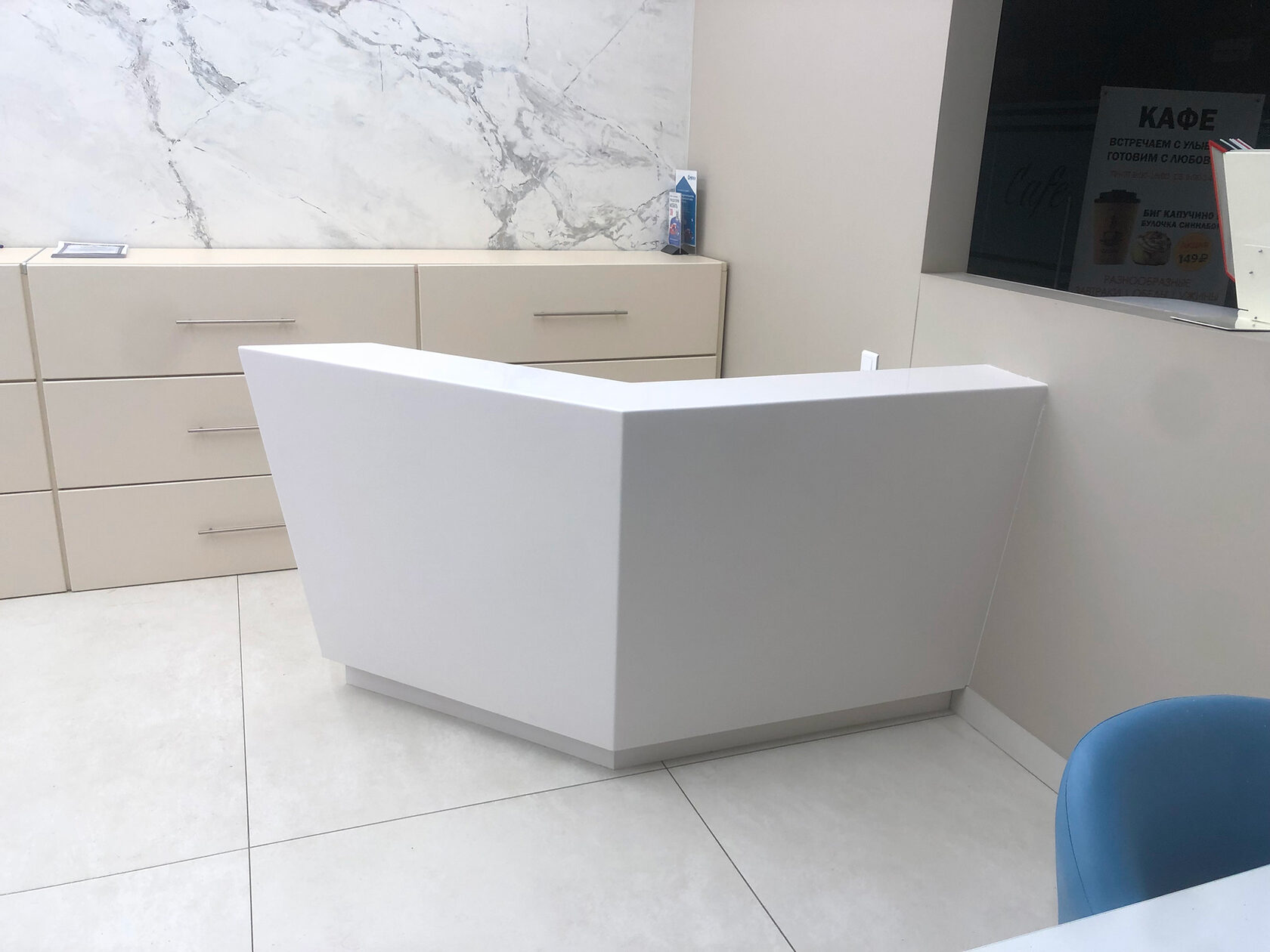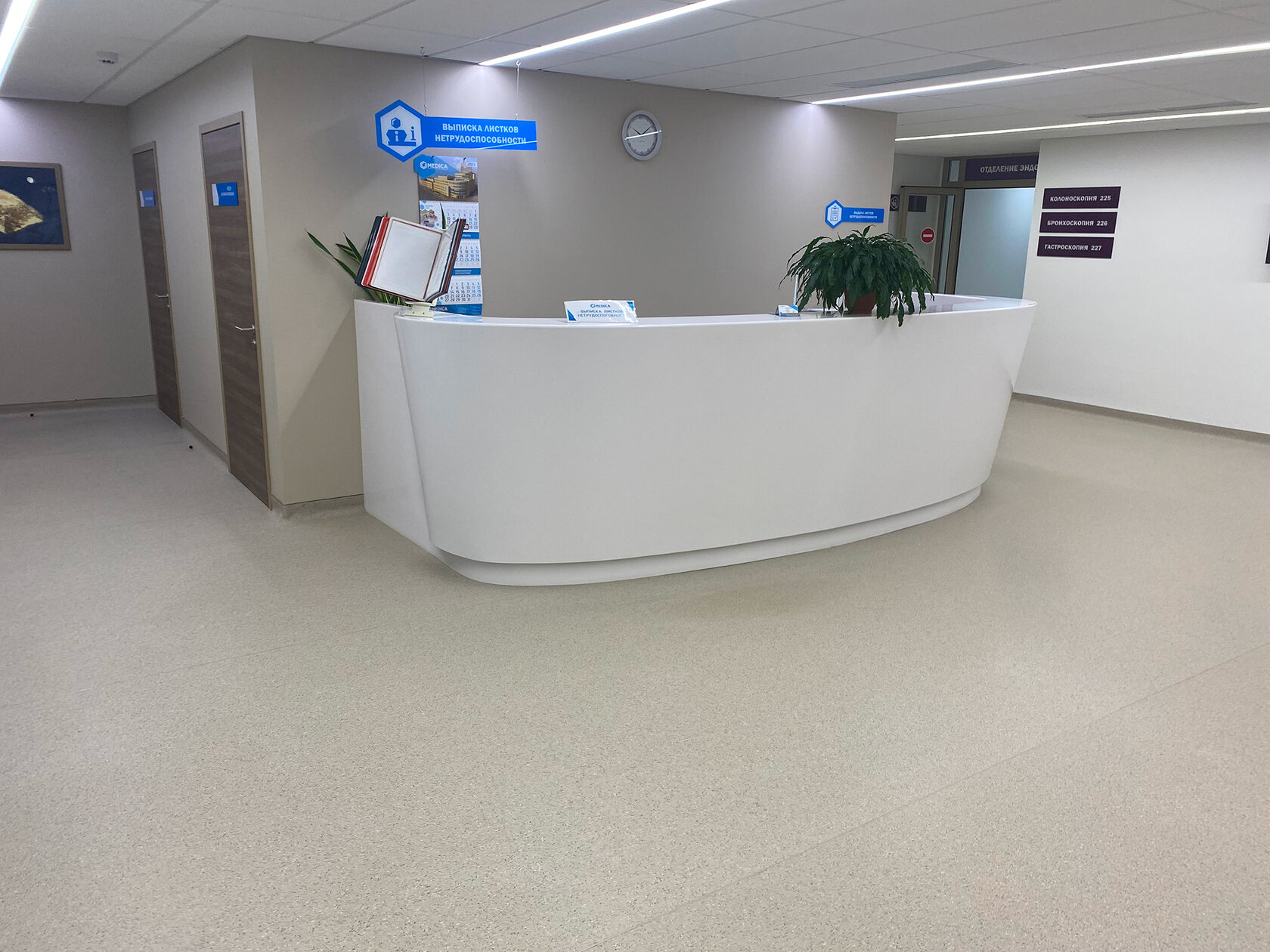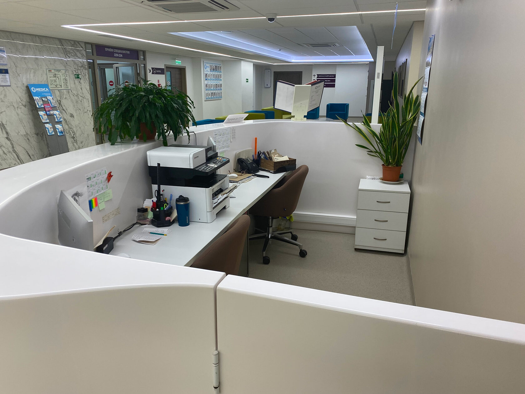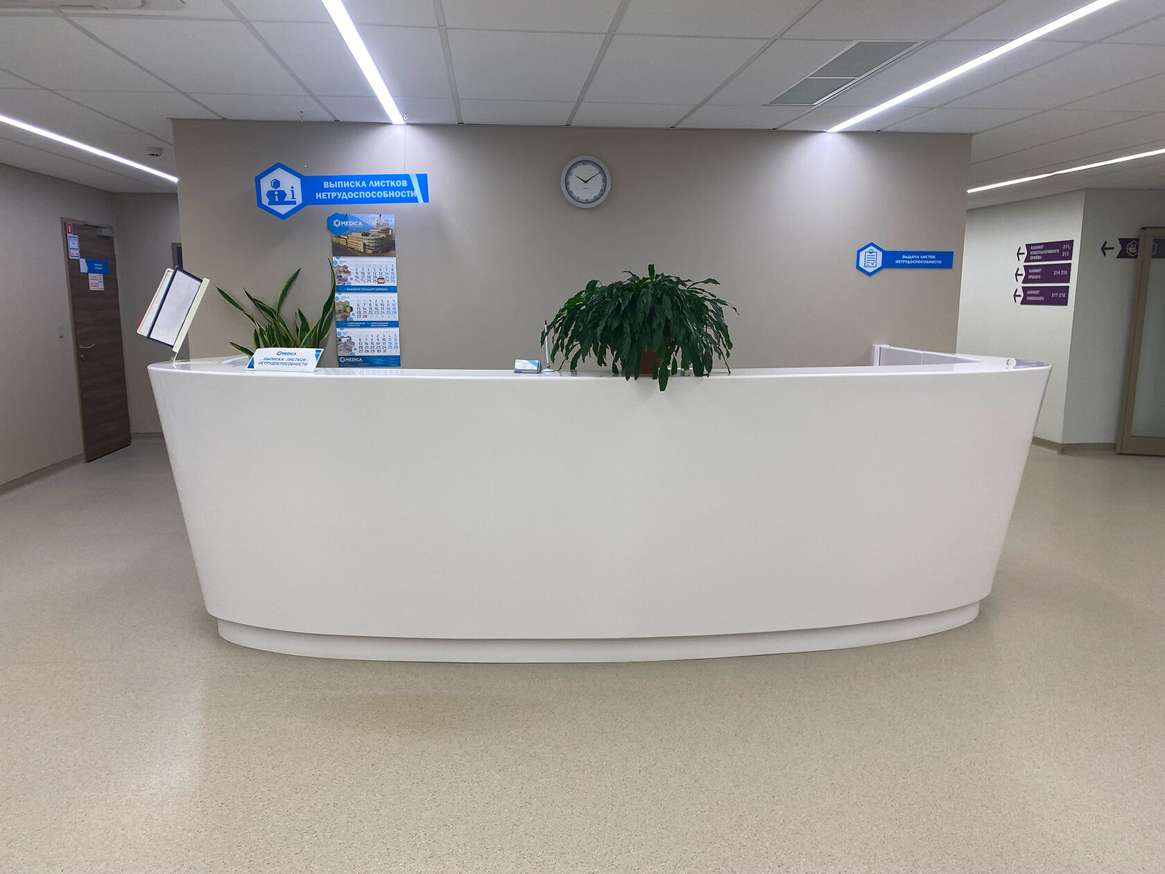 Стойки администратора из искусственного камня в медицинском центре «Гранд Медика» с 2017 по 2022 года