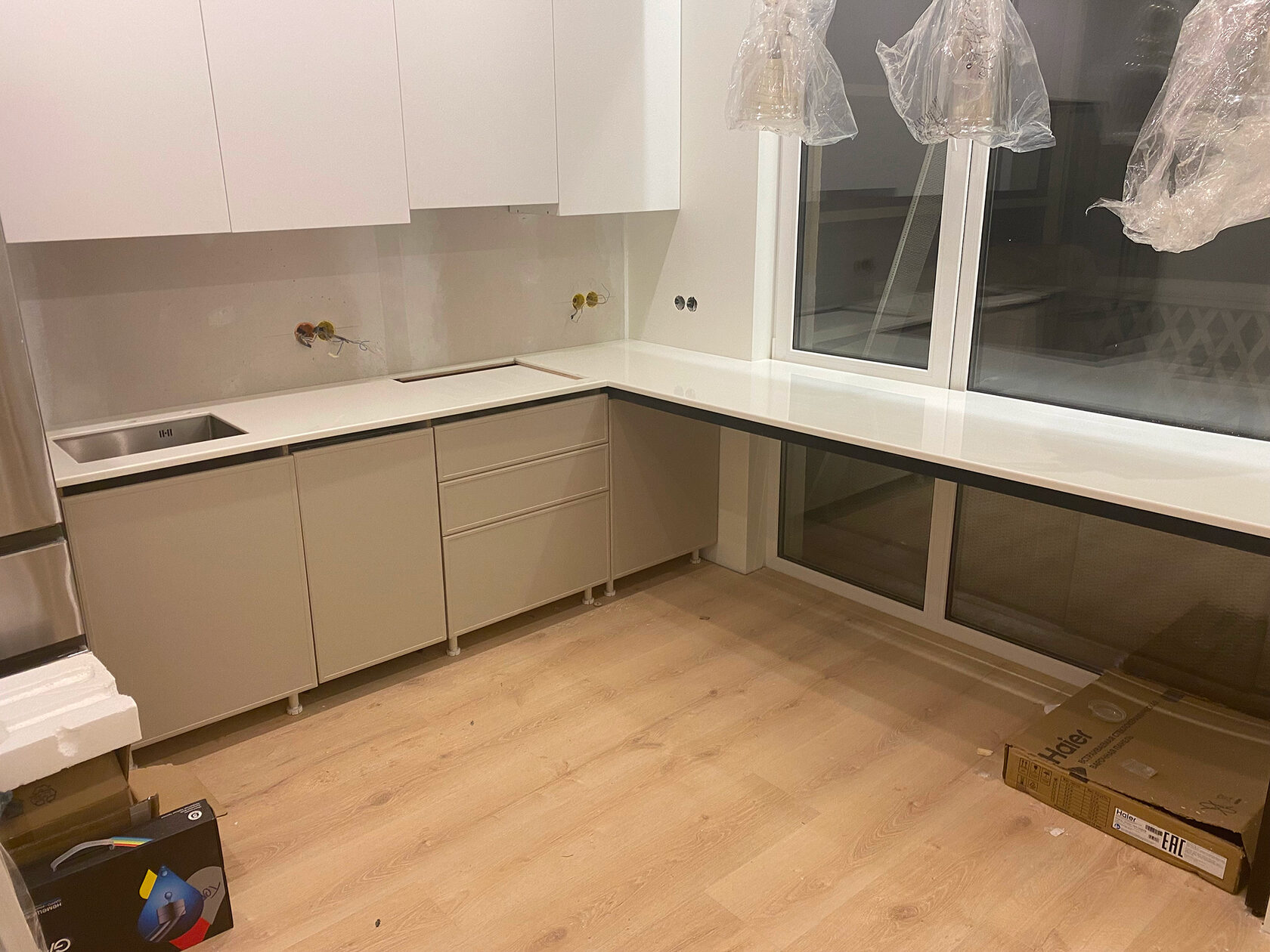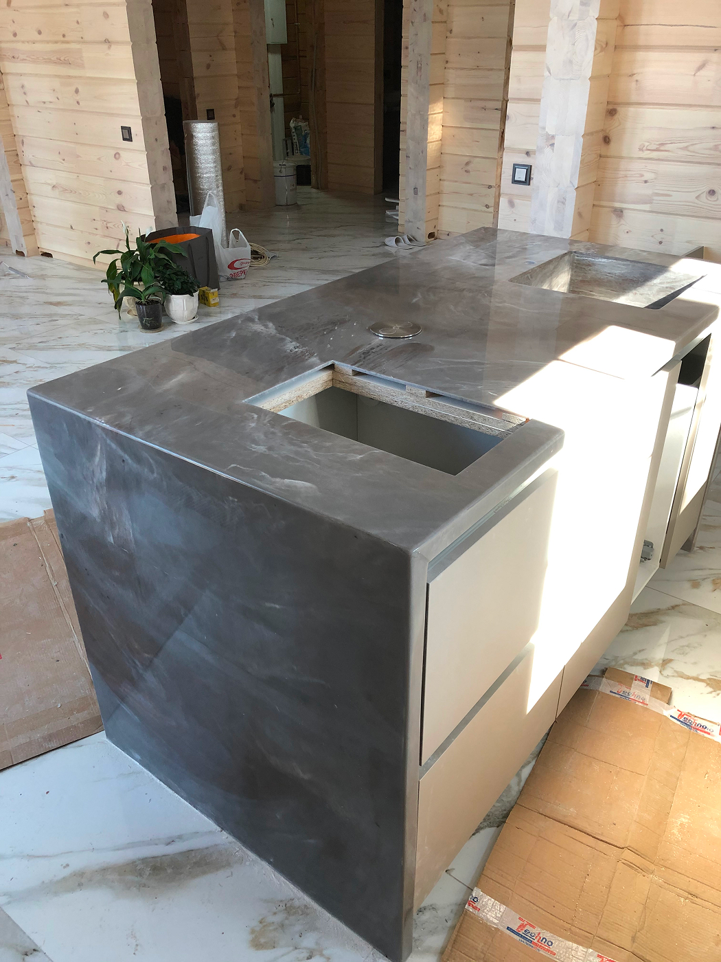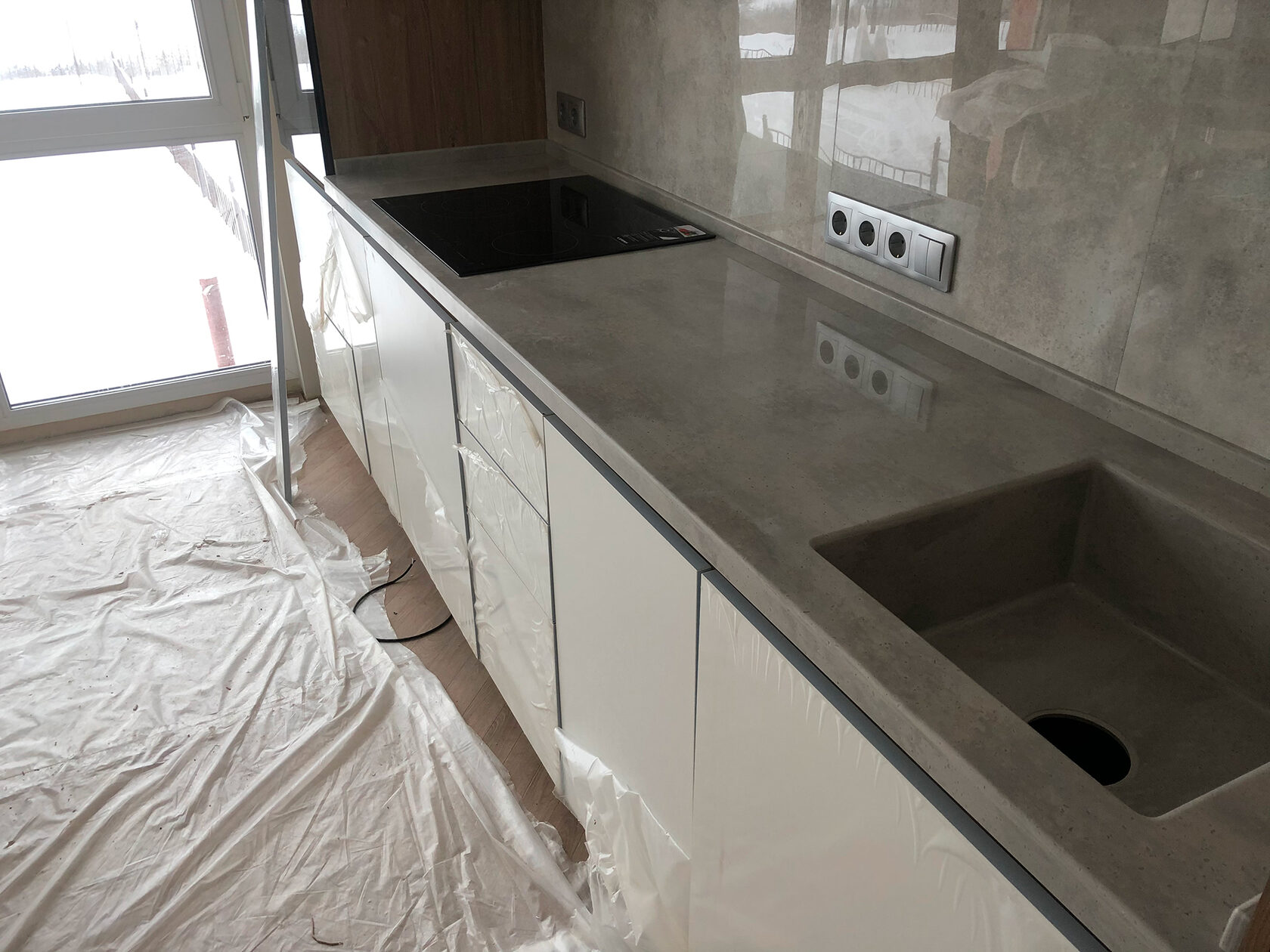 Столешница с интегрированной мойкой из искусственного камня, Прокопьевск (2022г.)
